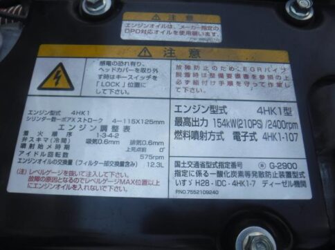 エンジン4HK1排気量 5,190馬力210ps