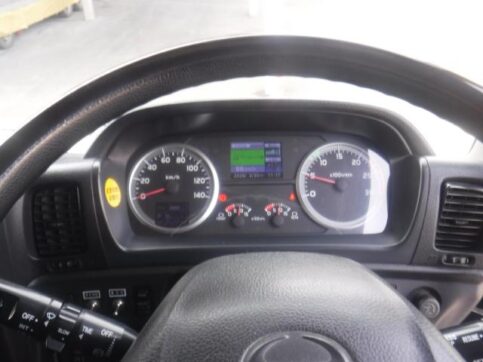 | 主要装備 | PS・PW・AC・EBS・ブレーキロック ETC・カラーバックアイカメラ 電動ミラー・T/Mリターダ・社外ナビ・TV デジタコ(チャート紙)・ステンサイドバンパー フジタボデー(2013年7月)・ハイジャッキ・ウィンチ 自動アユミ(オートスライド)・荷台地上高112㎝ タイヤF:295/70R22.5・R:275/70R22.5 | ||||